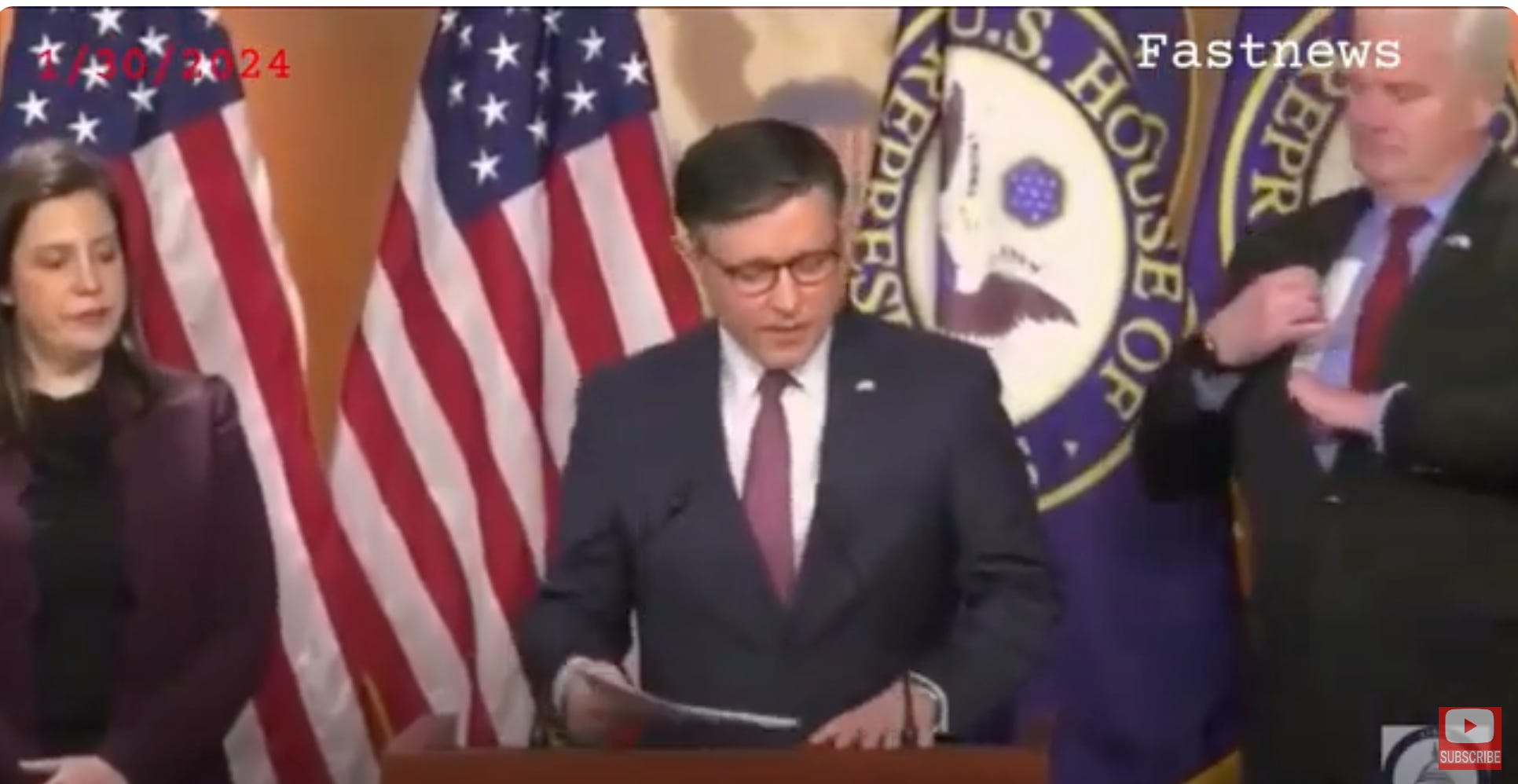 Some Republicans are especially peeved that Johnson might pass legislation with Democratic votes. Johnson could execute a House maneuver that would let him bypass the MAGA Rules Committee and pass a tax deal with a two-thirds majority of the entire House. Although I wouldn’t count on Johnson’s ability to walk two steps without tripping over his shoelaces, Freedom Caucus Chair Bob Good nonetheless grumbled, “It’s a problem that we continue to do things under suspension of the rules.”