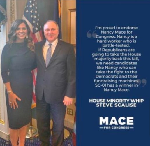 “I would be doing an enormous disservice to the voters I represent in South Carolina,” she said, straining credulity all to be damned: In May, a lower court ruled that Mace’s district was an illegal racial gerrymander that was made more Republican when a sizable number of Black voters were relocated from Rep. James Clyburn’s district after the 2020 census.