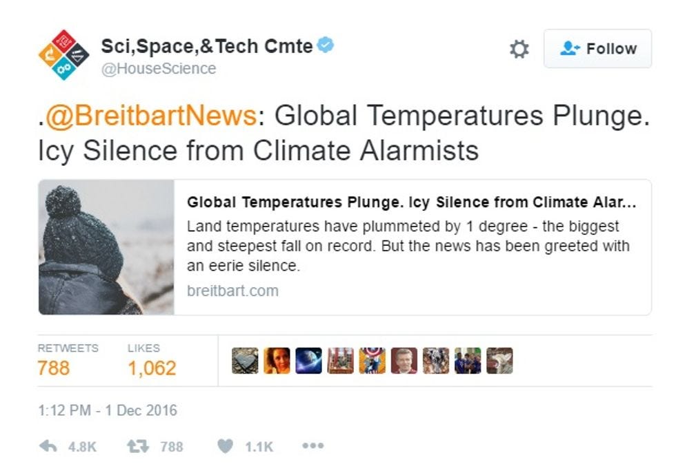 House Science Committee Celebrates Death Of Facts By Retweeting Fake Breitbart Climate Article