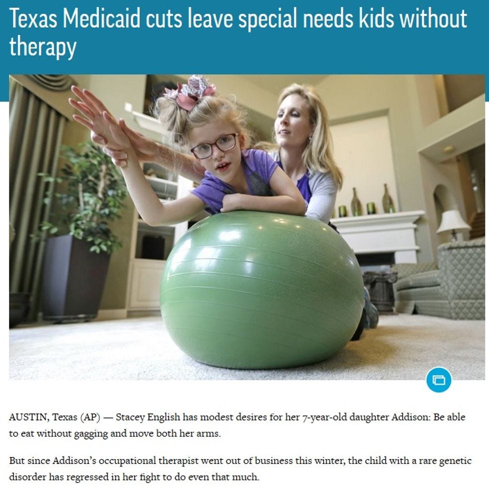 Also, speaking of Texas, while we were staring in confusion at Grieder's beautiful nonsequitur, the Associated Press dropped this story, which actually has nothing at all to do with the Senate's plan to slash Medicaid: