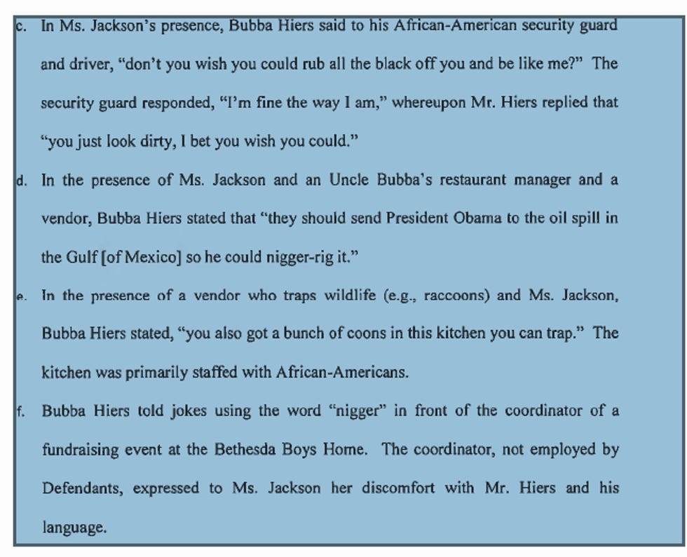 As for the sexism — in addition to the porn and the sexual harrassment — Jackson got paid less than male managers below her general manager rank, plus they got vacation, bonuses, and retirement, which Jackson didn't get because duh lady. When she asked for proper compensation, she was told Bubba would never countenance a skirt gettin' paid like the big boys. And Paula Deen knew about all of it, and Bubba's her brother, and her gross sons and sons' friends worked there too and pulled the same shit, like with the calling of the African-American employees "monkeys" and other such hallmarks of a racially transcendent workplace that could in no way be sued for a hostile work environment or basic civil rights violations. Go ahead and read the lawsuit. It's a corker! Paula Deen for president and stuff.