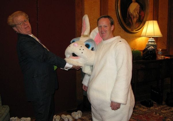 HAHAHA SILLY US, that is not a video! It is a tweet from New York Times reporter Glenn Thrush, because Spicer still isn't giving on-camera briefings. Is it because he's a morbidly obese pig man, like Steve Bannon said? Or is it just because the Trump White House is un-American and doesn't believe in a free press?