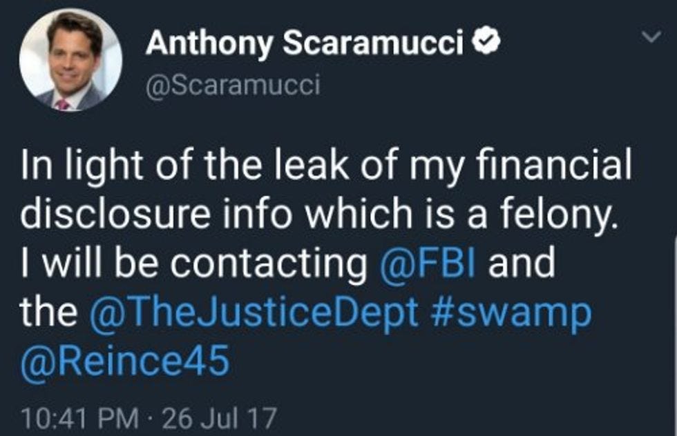 It started Wednesday night when Scaramucci tweeted this (and then deleted it, because he's so transparent ):