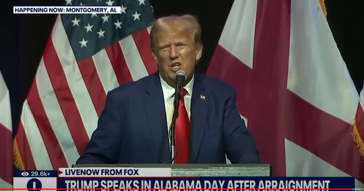 Of course, as we explained yesterday, part of Trump’s freakout has included some really offensive, insane, white supremacist dementia-babbling about Willis, because he apparently thinks it’s a good idea to attack prosecutors bringing him to justice. He’s specifically telling lies about Willis that she “[had] an affair with the head of the gang or a gang member” that she represented. Apparently this bullshit is even in a Trump campaign ad now. (Joy Reid read Trump for his racist filth last night, while tracing the lineage of this particular dementia babble Trump lie.)