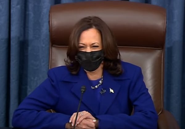 As we said, there was a cute moment with Vice President Harris before she administered the oath of office to those three. She was reading the certificates of election for the new senators, and had to say this with her mouth: