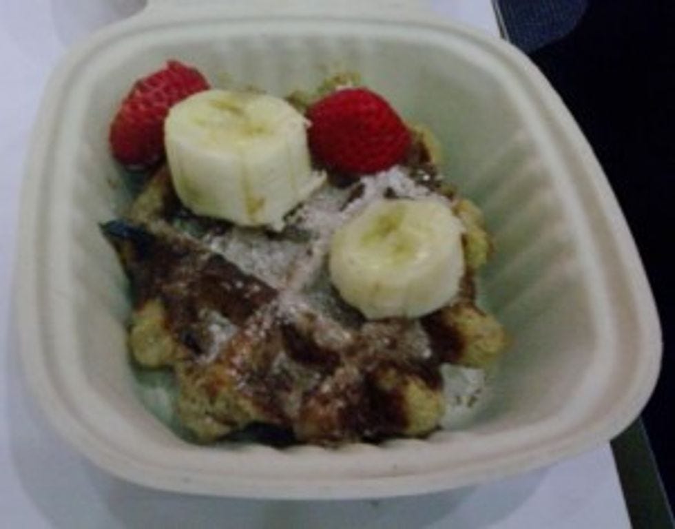 For dessert they serve Toffles. WHAT'S THAT. Why it’s a waffle that comes with a topping of your choice, be it peanut butter and jelly, fruit, nutella, or marshmallow fluff!