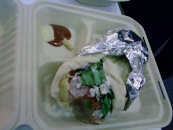 THERE IS MORE. They also serve soups, including a Chicken Mulligatawny (a spicy Indian soup with chicken lentils, rice and curry) and a hot & sour soup (just like the soup you get at your local Chinese restaurant, only better) as well as salads, including a Greek salad (inspired by farming fields in Greece) and a Thai chicken noodle salad (like Thailand!)