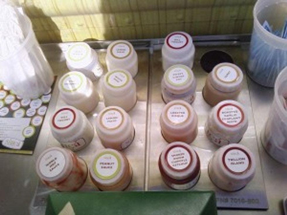 This is the Medi Veggie. It is made with vegetables and hummus and is basically a vegetarian’s wet dream. Other Saucass include the Pork Banh Mi (we love anything pork related) from Vietnam, the Lone Star BBQ Beef (this represents America), the Croque Monsieur (ham, swiss cheese and mayo from Europe!), and the Mumbai Butter Chicken (uhh, buttery chicken?). They have at least a dozen different sauces, including tahini, white miso, lobster bisque, and lemon mayo that you can add to your delicious, flatbread sandwich.
