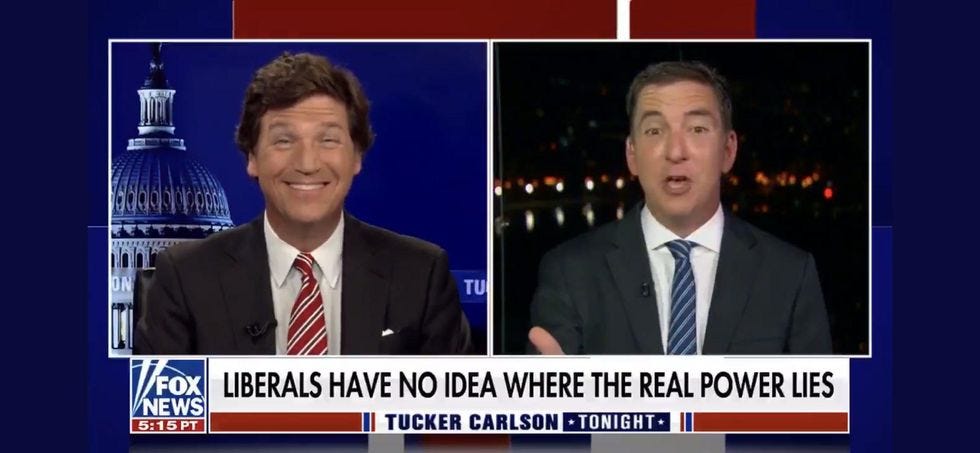 Of course, we would disagree with Glenn on the notion that which side you're on in the battle over whether it's OK to try to overturn American democracy and support a domestic terrorist attack on the Capitol in service of the previous president, an unhinged authoritarian , is a mere "trivial partisan concern." If that's "trivial" or "partisan," then hoo boy, we just don't know about this Brazilian blogger who beams into the Tucker Carlson White Power Hour for attention at least once a week.