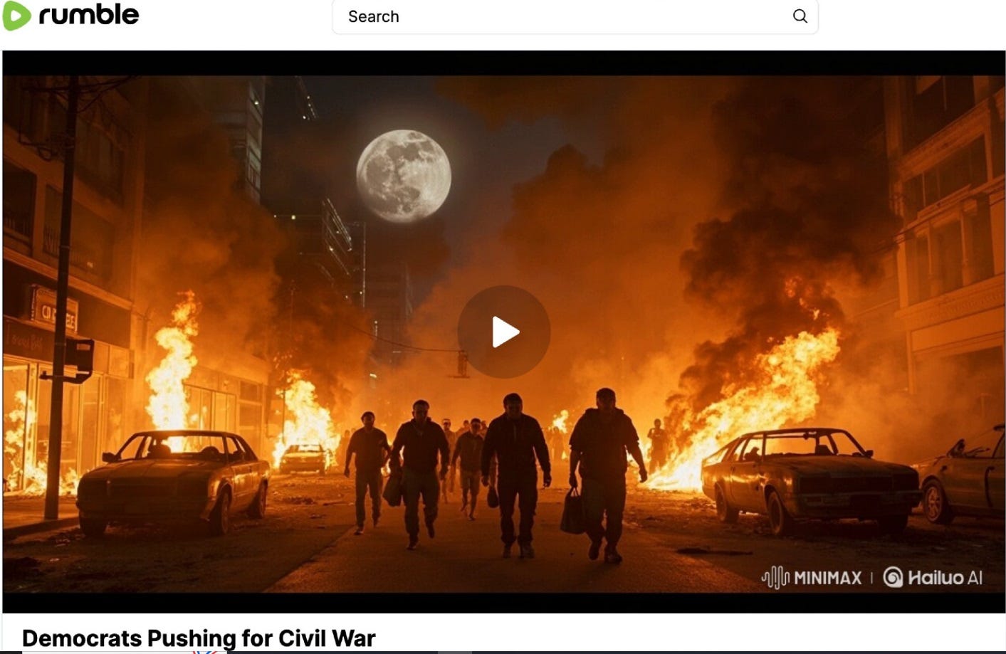 We were especially impressed by this humble Rumble bumble, which uses a mix of stock footage and AI images to tell us that the media is “gaslighting” us about the reality of what’s happening in LA.