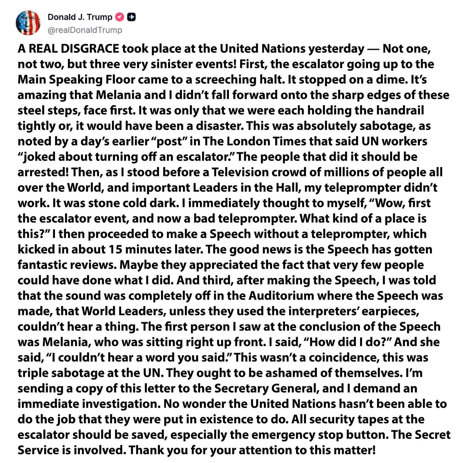 So, after almost a week of being torn up by maintenance workers, of being scrutinized and defamed and slandered and threatened by a bunch of dumb jerks intent on using me for clout, I have a message for Donald Trump: Next time you’re here at the UN, take the goddamn elevator.