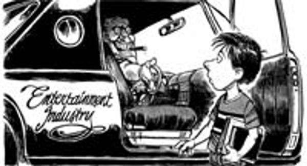 But kids! It's not easy to raise them in this day and age, am I right, people? I mean, if they're not being monstrous taloned beasts, they're off getting molested! In this sad scene, we're seeing yet another innocent youth falling victim to America's number one sexual predator: Franklin Delano Roosevelt. Very few people know that, once he had ended the Depression and ensured that the Allies were well on their way to victory in World War II, FDR faked his own death so he could move on to his next goal: Ensuring that America would always have the greatest entertainment industry in the world. And now, decades later, we know that he succeeded in this herculean task, as anyone who's tried to watch a European so-called "movie" can tell you. Nevertheless, his long experience in Hollywood inevitably eroded his formerly sterling morals, so now he prowls the streets in his AMC Pacer, looking for little boys.