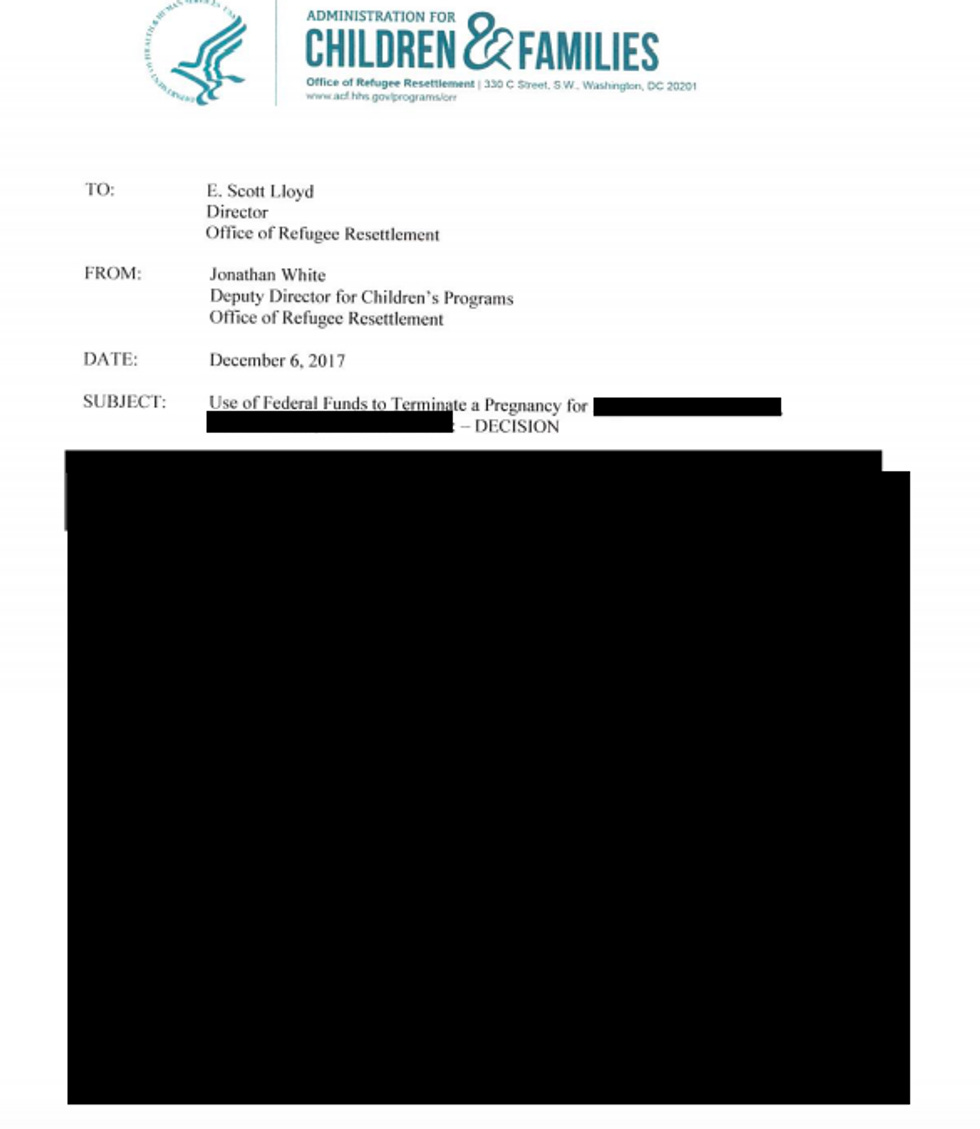 We thought it was to make sure that Poe's case didn't set a precedent that ORR must permit girls in its custody to access abortion care. But there was a whole extra layer of fuckery! It seems that ORR knew that Poe was pregnant as a result of rape, and denied her an abortion anyway. Scott Lloyd, the anti-choice loon appointed to head ORR, drafted a memo denying her access to abortion citing all manner of junk science and his own personal moral objection to late-term abortions. Which is hella illegal, and explains why the Justice Department fought tooth and nail to make sure this memo never saw the light of day.