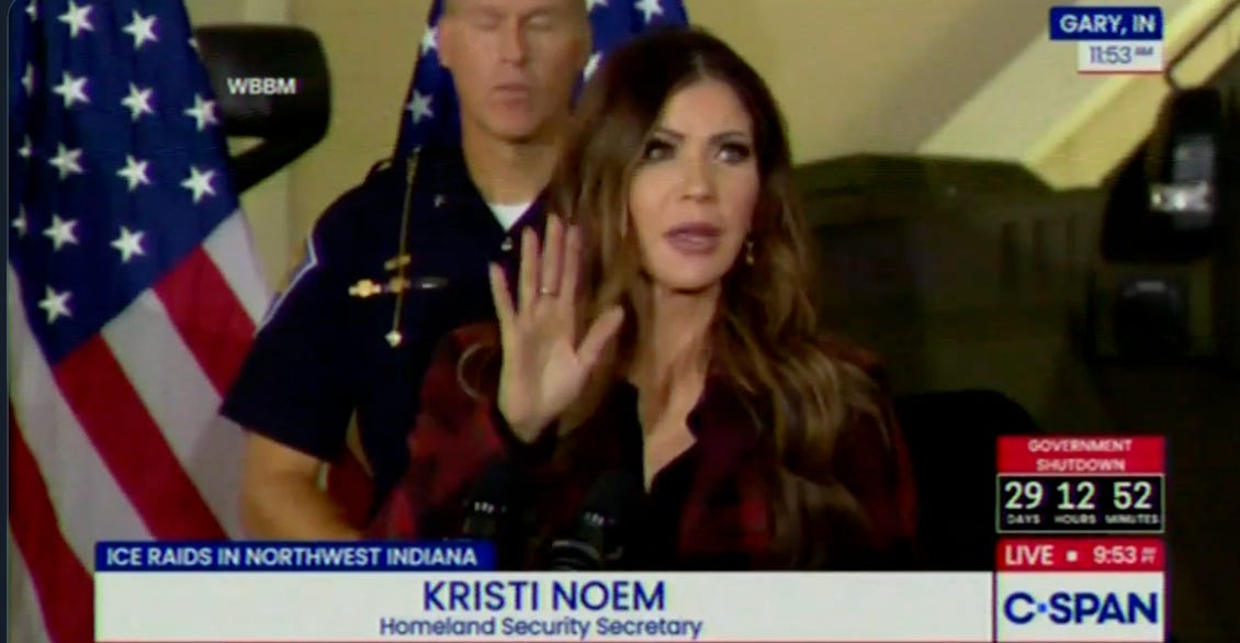 “We’re absolutely not willing to put on pause any work that we will do to keep communities safe,” Noem said at a news conference in Gary, Indiana, on Thursday. “The fact that Gov. Pritzker is asking for that is shameful and, I think, unfortunate that he doesn’t recognize how important the work is that we do to make sure we’re bringing criminals to justice and getting them off our streets, especially when we’re going to send all of our kiddos out on the streets and going to events and enjoying the holiday season.”