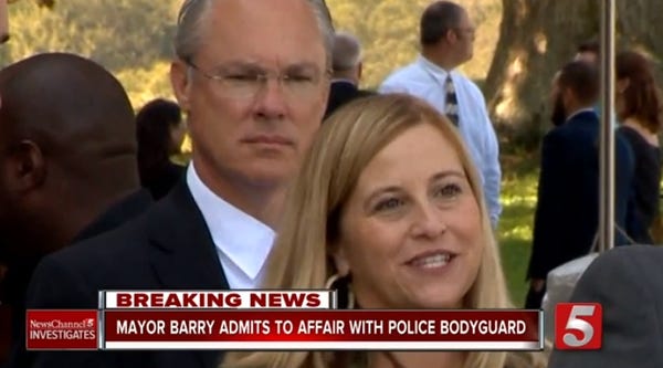 Bad news for all mayors who have that one special bodyguard what is not their husband, the one they take on romantic official mayoral trips to France on the taxpayer dime, who clocks a bunch of overtime because his cock is working overtime. Megan Barry, the progressive mayor of Nashville and also the mayor of boning on the public dime, has resigned from office. She also has pleaded guilty to felony theft over $10K. She will have to pay the city back $11K moneys, and also her ex-lover/bodyguard Sgt. Robert Forrest will have to pay back $45K, as punishment for Improper Use Of Night Stick (Penis). Or something like that, we are not here to delve into the finer points of Tennessee state law.