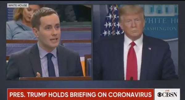 Trump, looking more in his element, jokingly said he'd “take a look" because violence against women is HILARIOUS. Then a real reporter asked a question about the plague that's killing everyone on the president's watch.