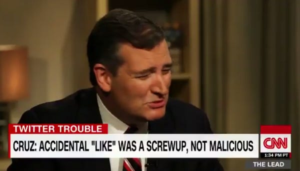You guys, Ted Cruz loves dildos. LOVES THEM. Like, if he only got to take one thing to a desert island, it would beHeidi Cruz Campbell's soup, but if he got to take TWO things to a desert island, the second would beHeidi Cruzdildos. CNN's Dana Bash yanked this information out of the senator's mouth in an interview about his porn tweet, which he's still blaming on a "fella" in his office, to which we reply, GIMME A BREAK, PORN HOLE!