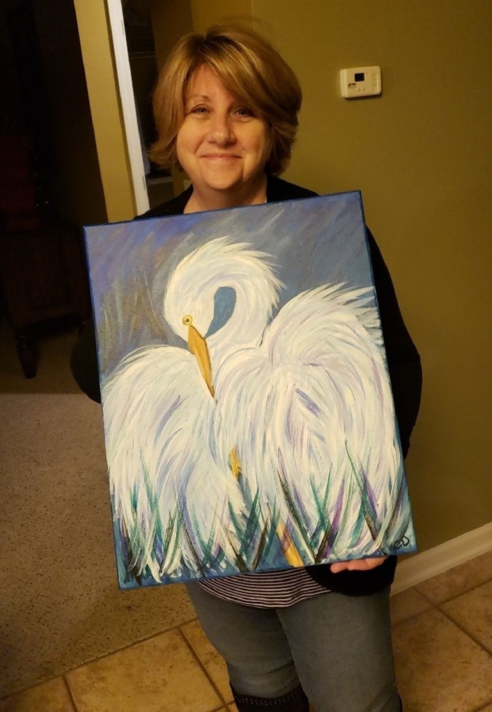 We'll close with another hobby project: A woman's photo of her mom holding her painting of an egret (only Mom's second try in a painting class) made the internet go rapidly and wonderfully nutso last week: