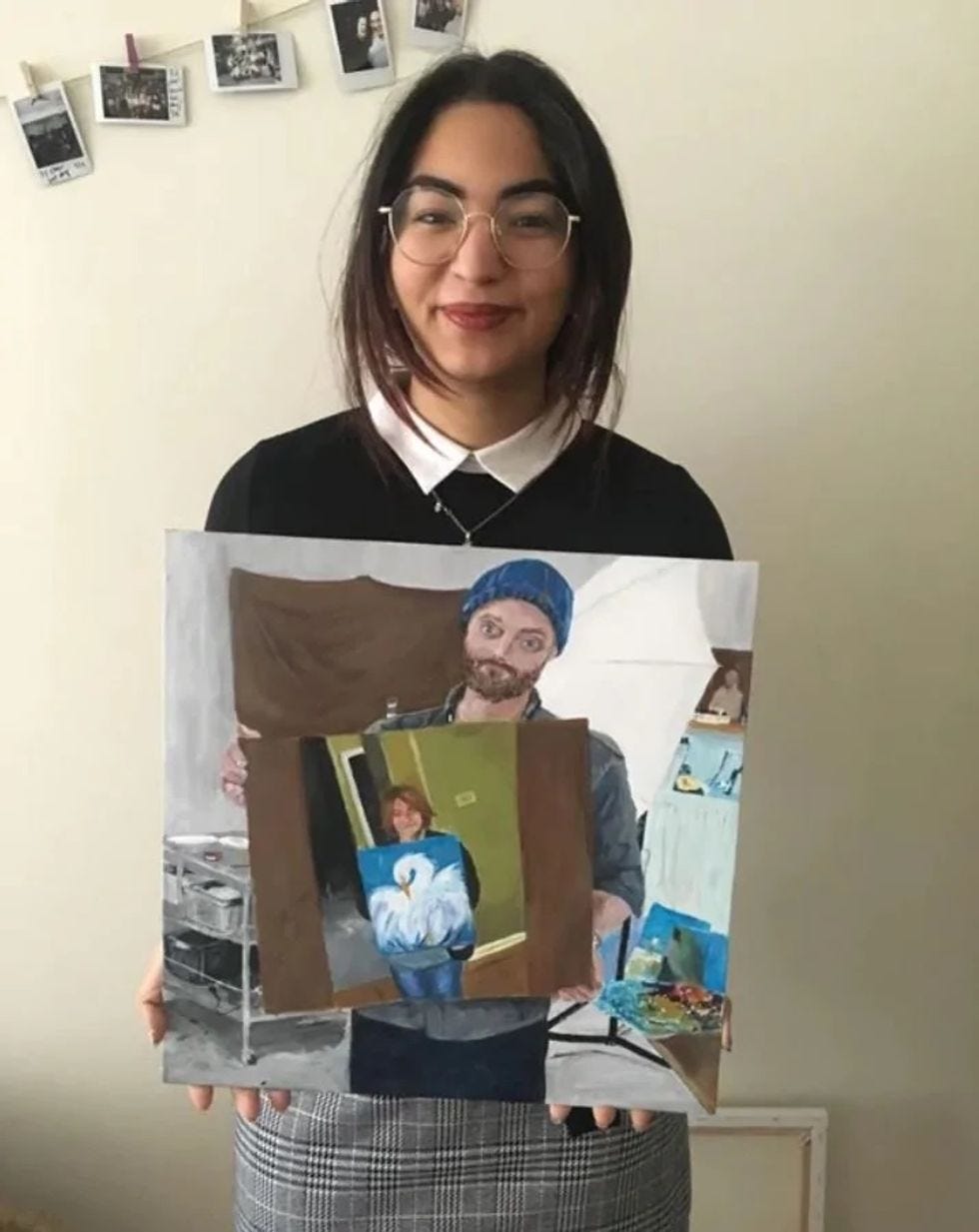 And so on, like barbershop mirrors or a Quaker Oats box , Only this time with an ever-expanding chain of paintings by amateur artists. It's a thing of beauty, and Cindi Decker, the woman who painted the egret, thinks its hilarious, because when her daughter first posted the photo, she feared people would make fun of her. She even joined Reddit (where all this happened) to thank everyone for the wonderful silliness.