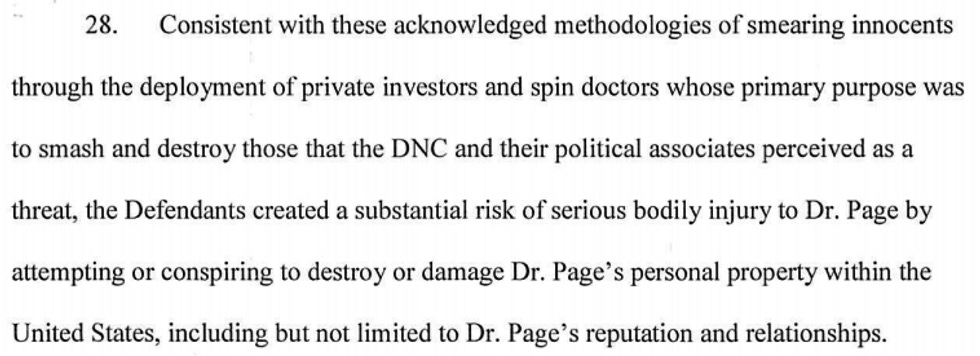 After accusing the DNC of tortiously interfering with Carter Page's very successful business contracts by saying he talked to a different Russian than the one he actually talked to so no one wanted to do business with the boy wonder no more -- which is not how it works, but don't stop here, this is BAT COUNTRY -- Page went on to allege the DNC and its law firm Perkins Coie were part of a corrupt organizational conspiracy to ... something? Put one over on the FISA court? Harm the "Trump Movement"?
