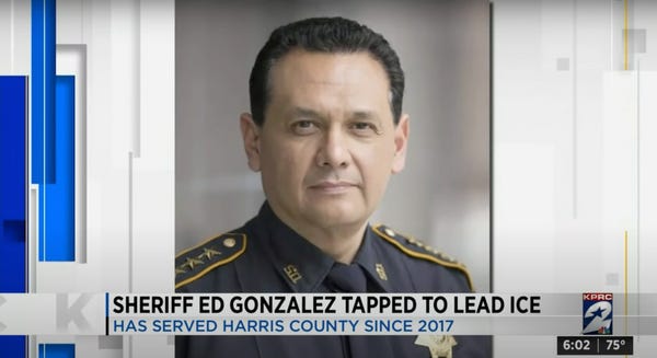Gonzales was elected sheriff of Harris County (that's Houston) in 2016 and won re-election last year. Harris is the largest sheriff's office in Texas and the third-largest in the country. He'd previously risen to rank of sergeant during his 18 years with the Houston Police Department. He's been a consistent critic of President Klan Robe's grotesque immigration policies.