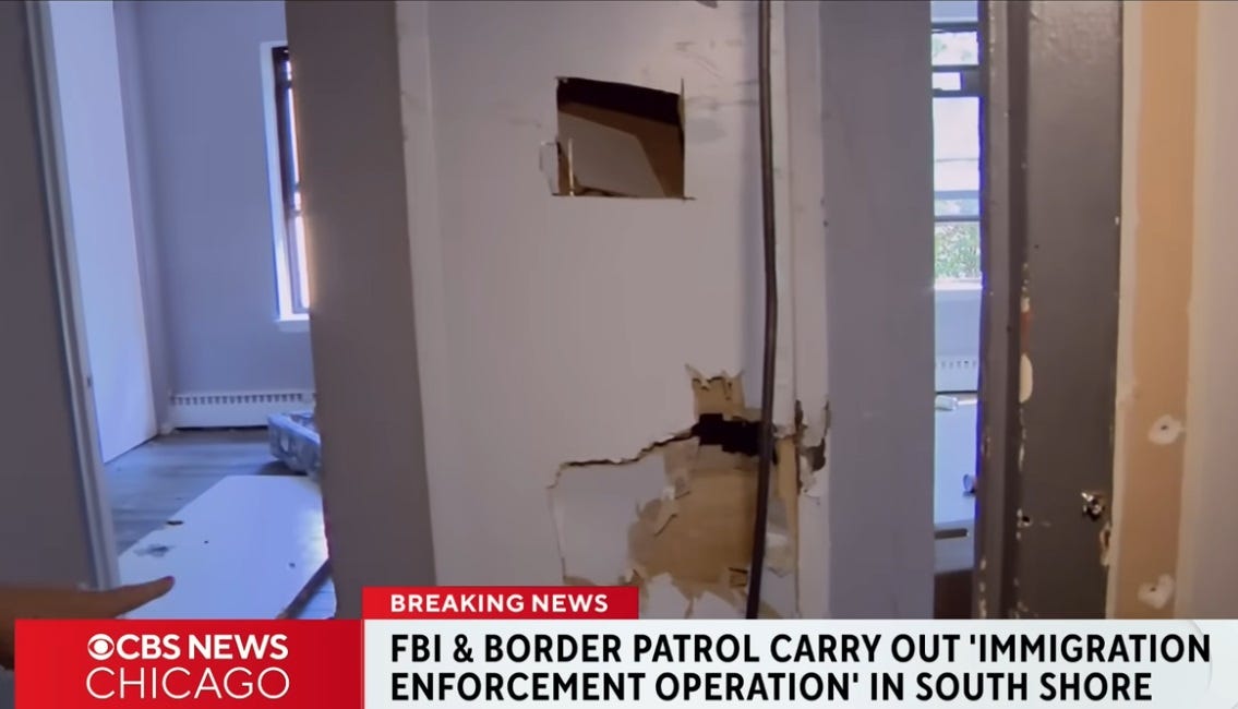 Around 300 federal officers from the FBI, Border Patrol, and Bureau of Alcohol, Tobacco, Firearms and Explosives raided a five-story apartment building in Chicago’s South Shore neighborhood in the early hours of Tuesday morning, breaking down doors indiscriminately and dragging people out of their apartments without any pretense of showing a warrant. Nearly every apartment in the building was entered or approached, and people were dragged out of the building, including men, women, and children, many in night clothes, and some completely naked. The raid was part of the Trump administration’s ongoing “Operation Midway Blitz” in the Chicago area, just to call to mind the Nazi invasion of Europe at the beginning of WWII.