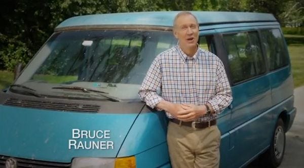 Rauner, whose campaign pushed the narrative of a meager man plugging away for the people from his headquarters in the back of a Eurovan , should know a lot about Illinois' pension situation. For years, Bruce and his ilk squeezed exorbitant management fees through government connections and by convincing pension boards that paying them millions to spin the roulette wheel was a better way to go than a $5 Drinking Bird with an E-Trade account. Rauner then skirted SEC regulations to receive campaign donations from firms handling Illinois' pension funds.