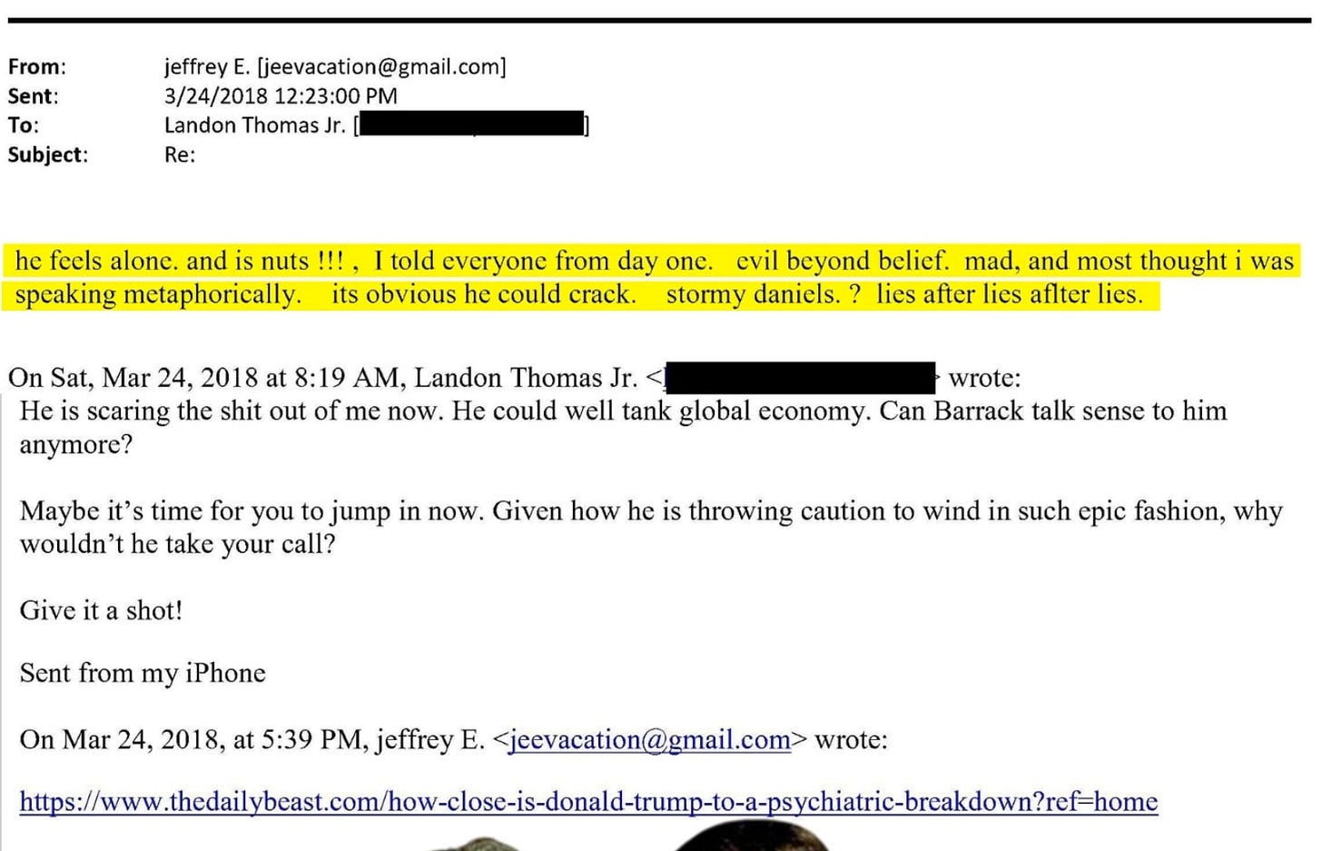 (Sidenote, in that screengrab we see Landon Thomas asking “Can Barrack talk sense to him anymore?” Tom Barrack, current ambassador to Turkey whose name has been floating around Trump like a turd in a golden toilet for ages. We only note it because we’ve already seen in the wild MAGA dipshits thinking it’s referring to Barack Obama, like CHECKMATE YA LIBS, so watch out for that so you can make fun of it.)