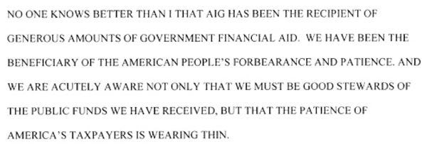 Rendered in delightful AOL wingnut allcaps. The remarks are brief and uninformative and do not go into any great detail about the bonus scandal besides saying, "Compensation, we are looking into it." [ House of Representatives (PDF) ]