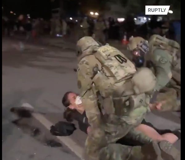 Not only has Trump's rhetoric not changed, but he's followed through with violent action, literately invading America's own cities. The cops and Trump's goon squad declare almost any protest an “illegal riot" because of the often unrelated actions of a few. Indiscriminate violence swiftly occurs, and unarmed, nonviolent civilians are teargassed, shot with rubber bullets, or just beaten senseless.