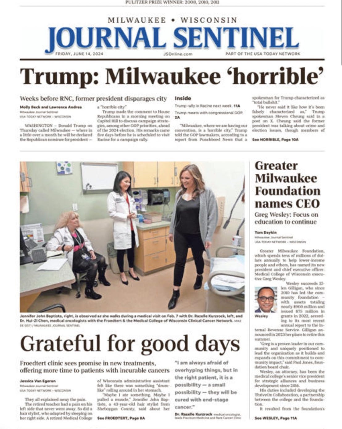 What is even funnier is watching the quislings of the Republican Party trip over their own dicks in a desperate attempt to come up with spin they can all agree on while the Milwaukee Journal Sentinel splashes the headline “TRUMP: MILWAUKEE ‘HORRIBLE’” across its front page in 45-point type.