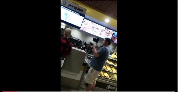 It's rather fascinating to see, really. As David Futrelle points out at We Hunted The Mammoth, it is basically an MRA (Men's Rights Activist) reddit come to life, in an Ottawa McDonald's. Usually, on the rare occasions that we get to see these fellas in the wild, they are alone and talking to themselves in their cars.