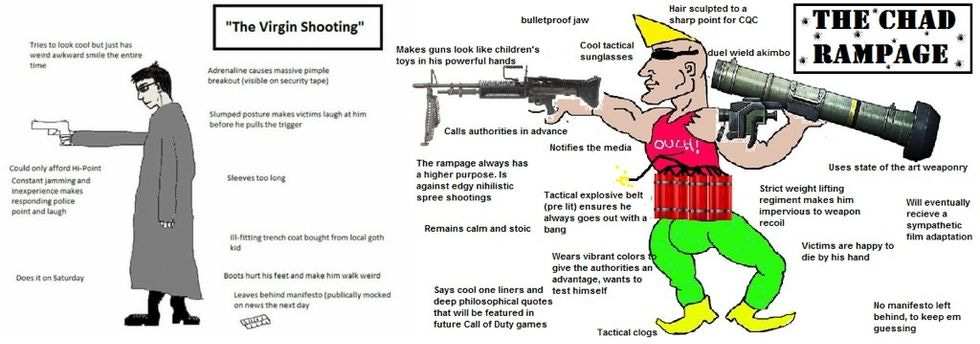 In a development that should shock absolutely no one at this point, Clyde had recently been posting "incel memes" on Facebook, notably one delineating the differences between a "virgin shooting" and a "Chad rampage."