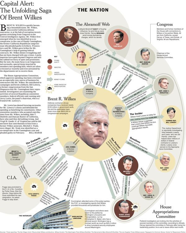 Hooray for the slow march of justice for lesser Bush Administration figures! Former No. 3 CIA boss Kyle "Slimeball" Foggo and impossibly corrupt Duke Cunningham buddy/contractor Brent Wilkes have been officially indicted for many federal crimes including conspiracy, wire fraud, and money laundering.