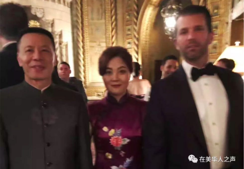 Duchess Trump-Grau is a popular attraction for the influence peddlers looking to make a connection with America's royal family. Here she is with Yang's client Huachu Tang , a Chinese auto executive who flew 17 hours to join the Mar-a-Lago New Year's Eve festivities.