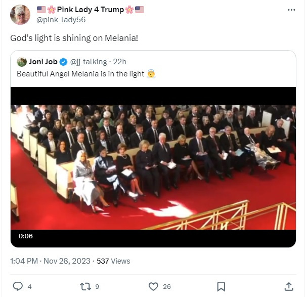 InfoWars Reports God's Mood Lighting For HRH Melania, Angel Of Light And Redemption, At Otherwise Satanic Rosalynn Carter Funeral