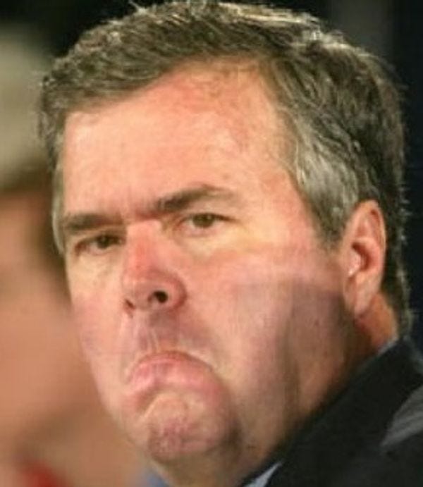 Yeah, notice any names missing up there? Maybe one big failure of a name in particular, maybe somebody whose dad was a bad president and whose brother was a bad president? That's right. Jebbers! In a head to head match up with Trump, he loses harder than Jeb! Bush having an arm-wrestling match with his mother, who hates him. To be exact, Trump has him 51-37. Overall with Iowa voters? That's even MORE sadder. He's cuddling with Mike Huckabee's man meat at 6 percent.