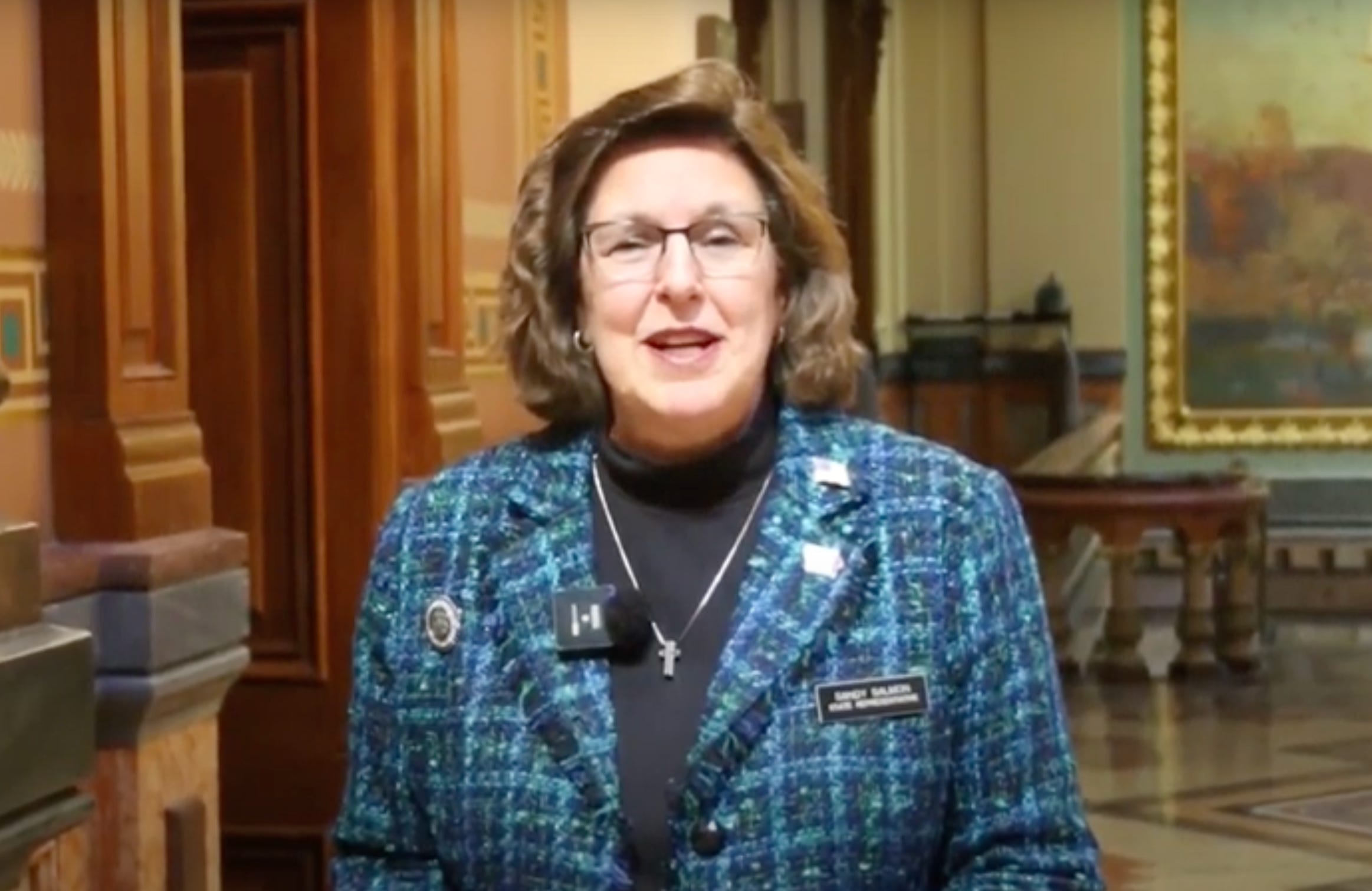 If there is anything Iowa state Senator Sandy Salmon loves more than a jaunty brooch or conversion therapy, it is her lord and savior, Jesus Christ. And if there is anything she hates more than drag queens and victims of domestic violence and sexual abuse being able to easily get restraining orders put on their abusers, it is Satan.