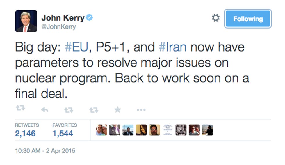 But since you can't trust those Iranians, Secretary of State John Kerry also Twitter-confirmed:
