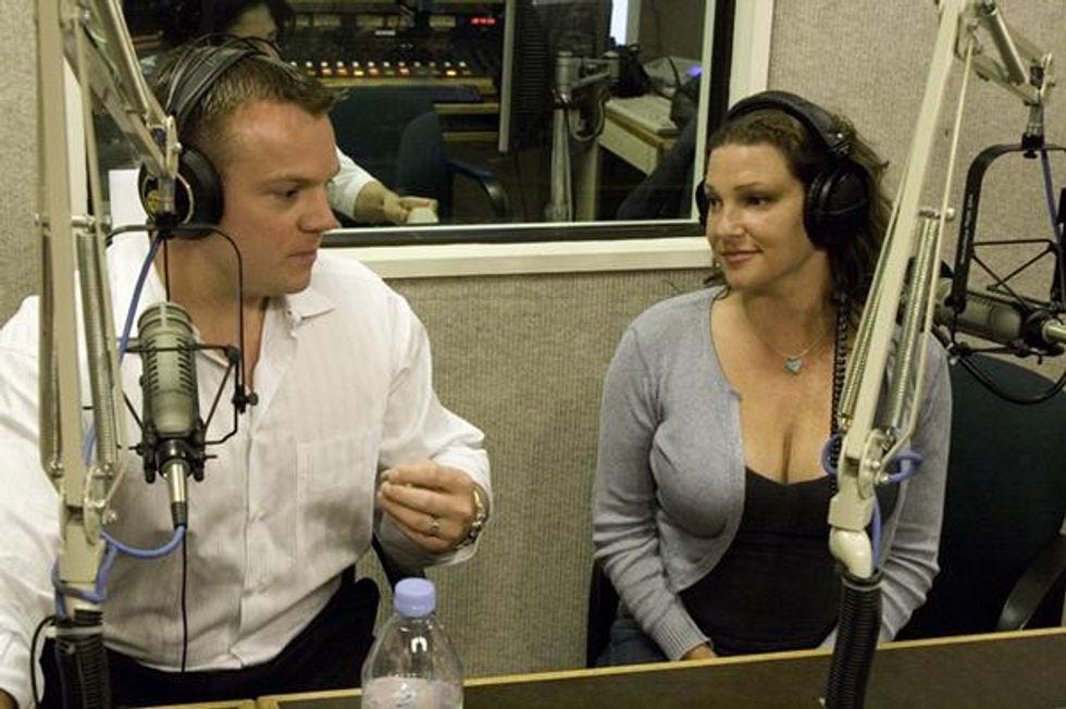 We responded to Rebecca with this picture from that radio show, "The Melting Point" on KRLA 870 AM, where Erik Brown is clearly entranced by Rebecca's rack.