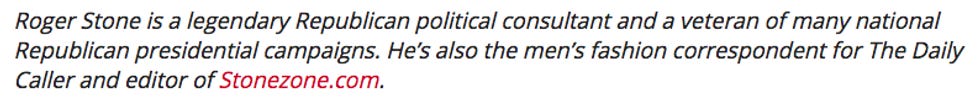Take it from political Wunderkind and Dapper Dandy Roger Stone, who has the single best author bio of all time!