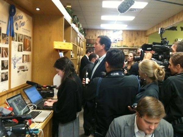 It is an excellent question, the one we have just posed right there in the headline. Is Rick Santorum a gutter drunk? Buzzfeed investigates, and seems to have photographic proof that yes, Rick Santorum is a gutter drunk. Here is a Twitter showing him drinking beer at 11: 30 a.m. because if he doesn't, he will have the DTs, because of how he is a terrible alcoholic who is addicted to alcohol (PROBABLY) and maybe other drugs too, why not. We hope for the sake of his 54 children that he is somehow able to kick his habit of constantly drinking premium beers all day and night forever, maybe by following in the footsteps of only-cool-Republican-ever and certified nice lady Betty Ford. The First Step, Rick, is to admit you are powerless over delicious beer and then find a higher power to believe in. A nicer one than you currently believe in, probably, because That Dude sucks. [Via Buzzfeed ]