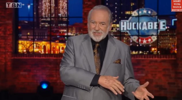 “Do you know how political opponents to those in power are dealt with in third-world dictatorships, banana republics, and communist regimes?” Huckabee asked during his opening monologue of Saturday night’s episode. [He has a show on Trinity Broadcasting Network. You didn’t know because you have a life and you don’t watch televangelist networks because you are not a goddamned fucking moron. — Ed.] “The people in power use their police agencies to arrest their opponents for made-up crimes in an attempt to discredit them, bankrupt them, imprison them, exile them, or all of the above.”