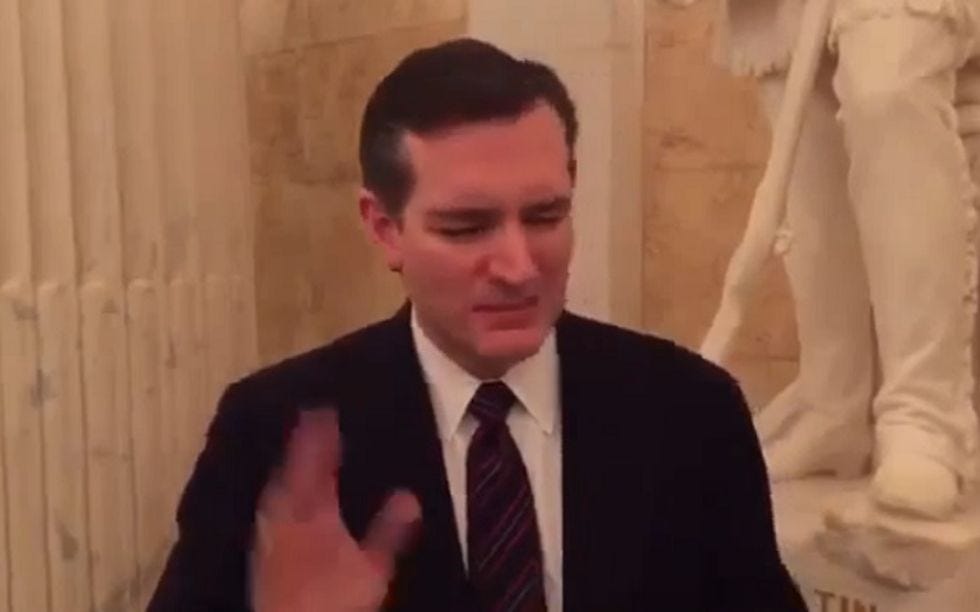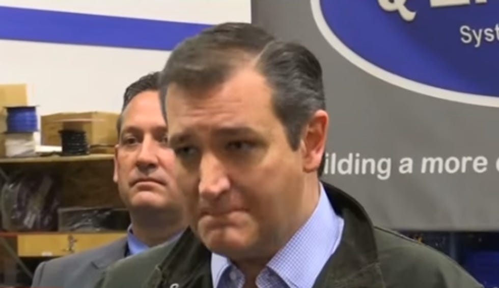Raw Story explains that Cruz's dry-drunk dad endorsed Pierson when she tried to primary Rep. Pete Sessions in Texas. Maybe while Rafael Cruz was "endorsing" Katrina, Little Ted was meeting her in the back alley and boning her behind the dumpster!
