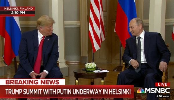 Over at Business Insider, reporter Sonam Sheth got on the talking telephone machine and dialed up some current and former spies and Justice Department officials, to see what they thought of President Russian Asset's little performance. None of them had good things to say, but their replies were mixed. Is he a literal actual Russian asset? Or is he just the stupidest, most impulsive, most wholly unqualified person to ever have access to the nuclear codes? Or is it BOTH?