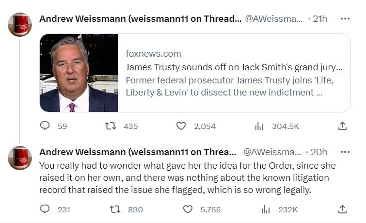 We wondered yesterday if this was some sort of attack on the legitimacy of the DC grand jury. And thanks to a tweet from Mueller veteran Andrew Weissman, we have at least a working theory.