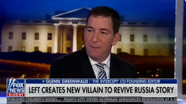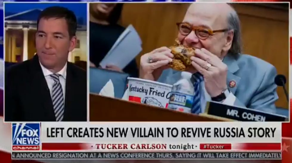 GREENWALD: Ummmmmm the Democrats? "Put all their eggs in one basket" and said Trump was a Russian agent but now they don't say that [ Actually, stupid, that question hasn't been answered yet, and we sure do still say it- Ed.] but then Robert Mueller found out their "conspiracy theory was a hoax" [ no he didn't -- Ed.] and like all these Democrats got rich? Off the Russia hoax? And I really want to say something about how Rachel Maddow banned me right now, because I am extremely angry about that? Anyway, it's kind of like the "leader of an apocalyptic doomsday cult," LOL what idiots, OMG Tucker is laughing at my doomdsay joke right now, I am so glad I came to see Tucker! In summary and in conclusion, Bill Barr is an honest man and Steve Cohen ate chicken.
