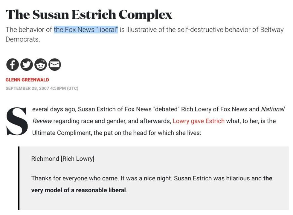 "The behavior of the Fox News 'liberal' is illustrative of the self-destructive behavior of Beltway Democrats."