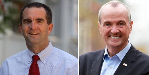 In New Jersey, the nationally-ignored gubernatorial race is between Democrat Phil Murphy, a former Goldman Sachs executive (ew), and Republican Kim Guadagno, currently Chris Christie’s lieutenant governor (EW!). New Jersey leans blue, went for Hillary Clinton in the presidential election, and is sick and tired of Chris Christie (who has a historic low 15% approval rating), so Murphy is favored, but that's no reason for Dems to stay home, because holy crap wouldn't that be awful if complacency let Christie's loot goober sneak into office?