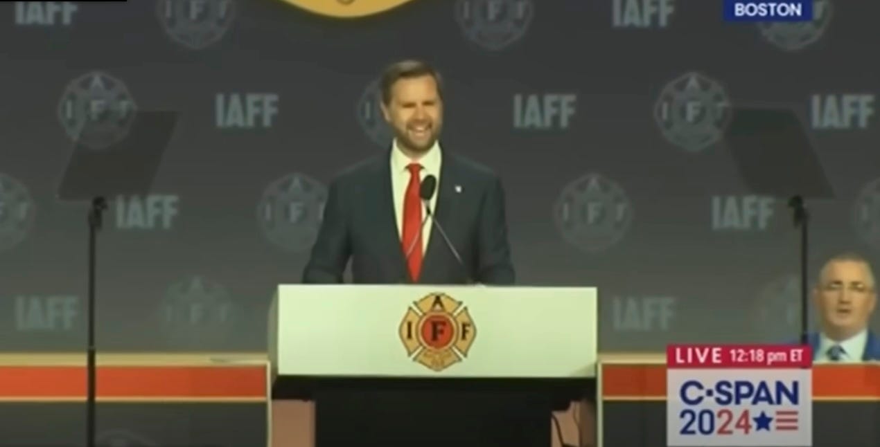 If there’s one other thing that US Vice President JD Vance has an enduring love affair with, it’s getting booed, and then crying on his social media about how everybody’s a bunch of intolerant haters. He loves, loves, loves it. Look how happy he was on the campaign trail getting booed by firefighters, his flesh-over-a-robot face baring teeth in a chimpy grin!
